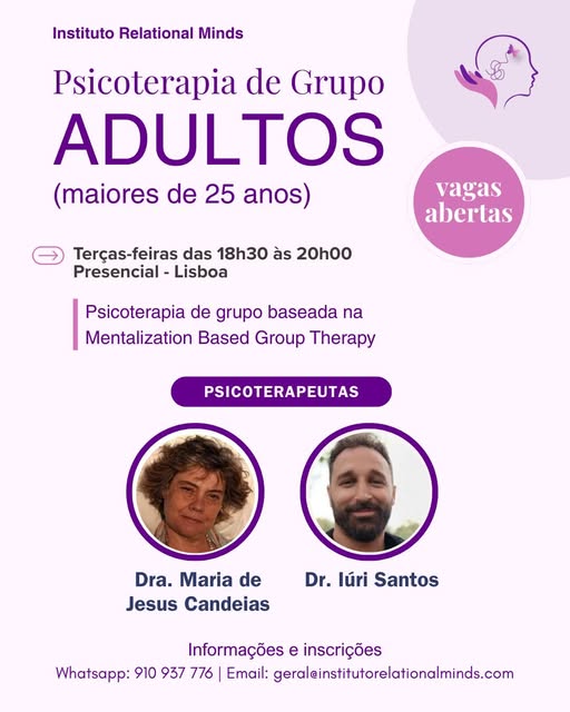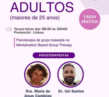 ✅A Psicoterapia de grupo baseada na Mentalization Based Group Therapy tem eficácia terapêutica comprovada no tratamento destes problemas.